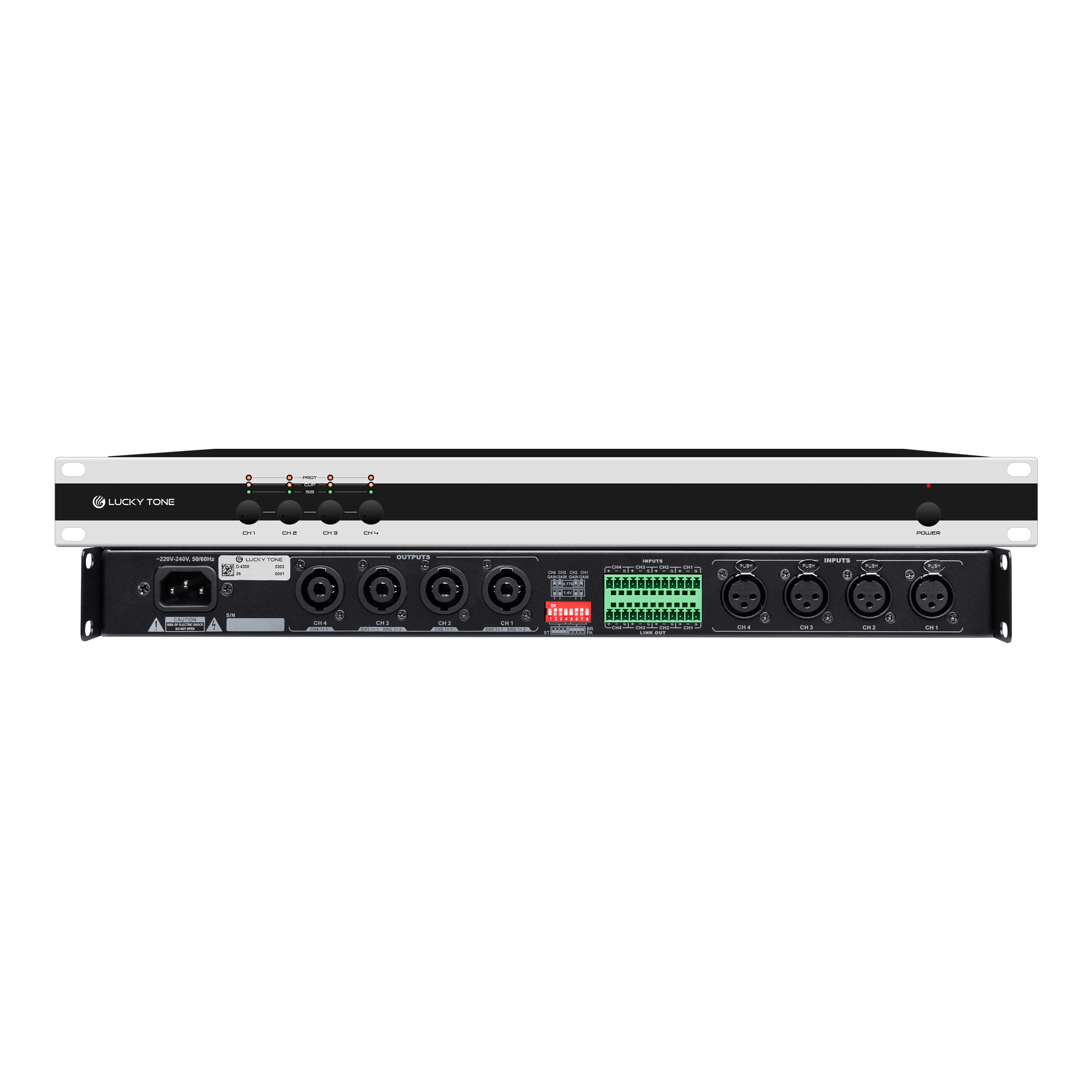Available in 2-channel and 4-channel models, this series of 1U Rack-Mount Digital Audio Power Amplifier features advanced full-bridge switching power supply and Class-D amplification technology, delivering high efficiency, low distortion, and stable performance. Ideal for professional audio, conference systems, and live venues.