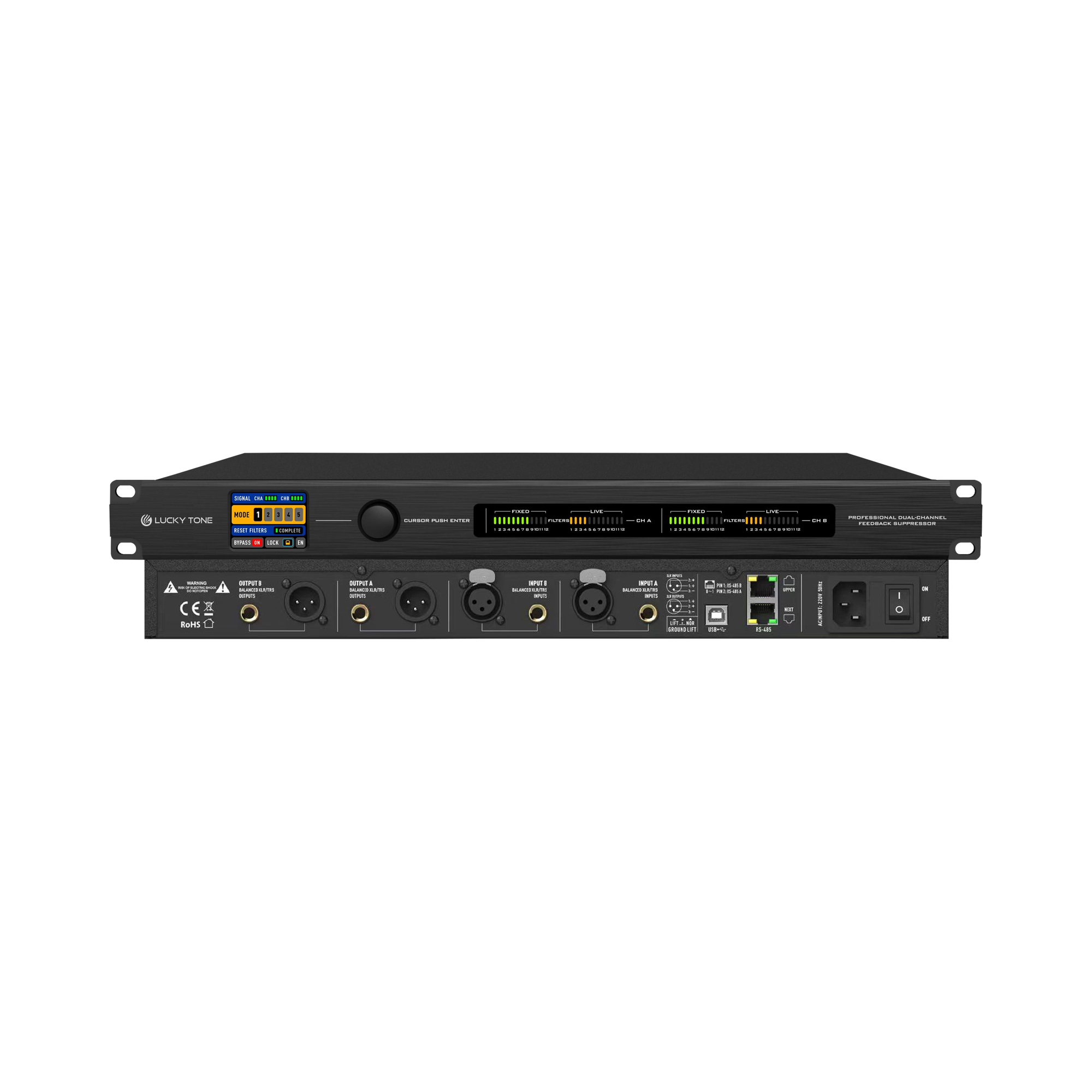 • 48 filter state LED light real-time display, each channel 12 static + 12 dynamic filter.